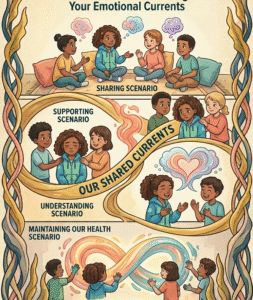 Children watch, feel, and name their emotions — learning that every wave of happiness, sadness, or calm is part of life’s gentle journey.