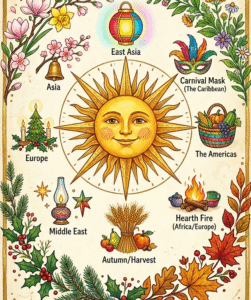 Lanterns hang from the trees, each telling stories of kindness and joy from around the world. Children learn that celebrating together can be gentle, warm, and like a hug that lasts all night.