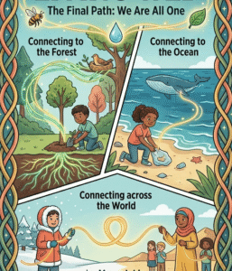 Each leaf whispers a tale, and every flower holds a legend. Children learn that the world is full of stories — quiet, wise, and waiting to be discovered.